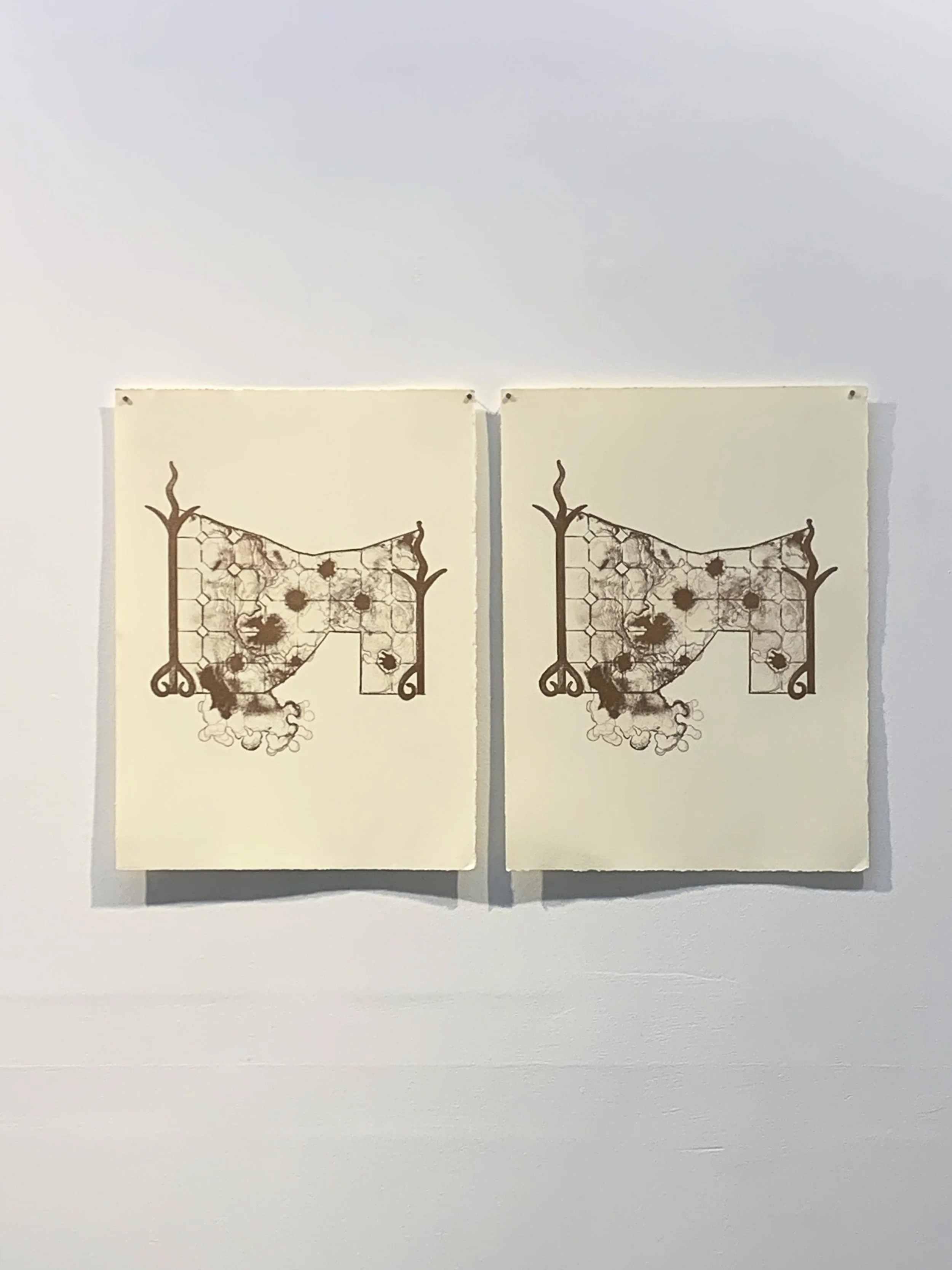Time is porous and fragile in The Pluperfect. The present is persistently interrupted by artefacts of an imagined past. Skye Malu Baker gathers lithographic prints, paintings and small sculptural works into constellations in which architectural elements are mis-remembered, film scenes are re-envisaged, and imperfect copies forget the boundaries of their former forms.